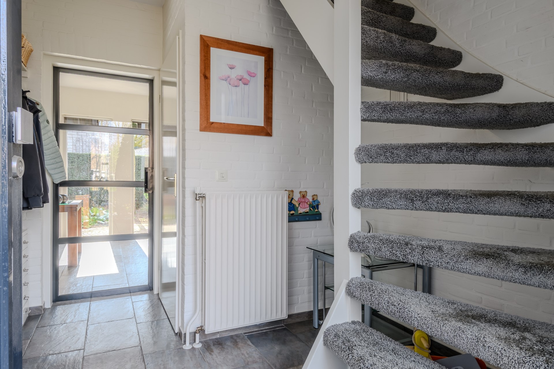 Begane grond: hal met toilet en meterkast, woonkamer met gashaard, vloerverwarming en airco, moderne halfopen keuken met alle inbouwapparatuur, bijkeuken met aanrechtblok en inbouwkast (wasmachine, wasdroger en diepvries), garage met vaste trap naar bergzolder.